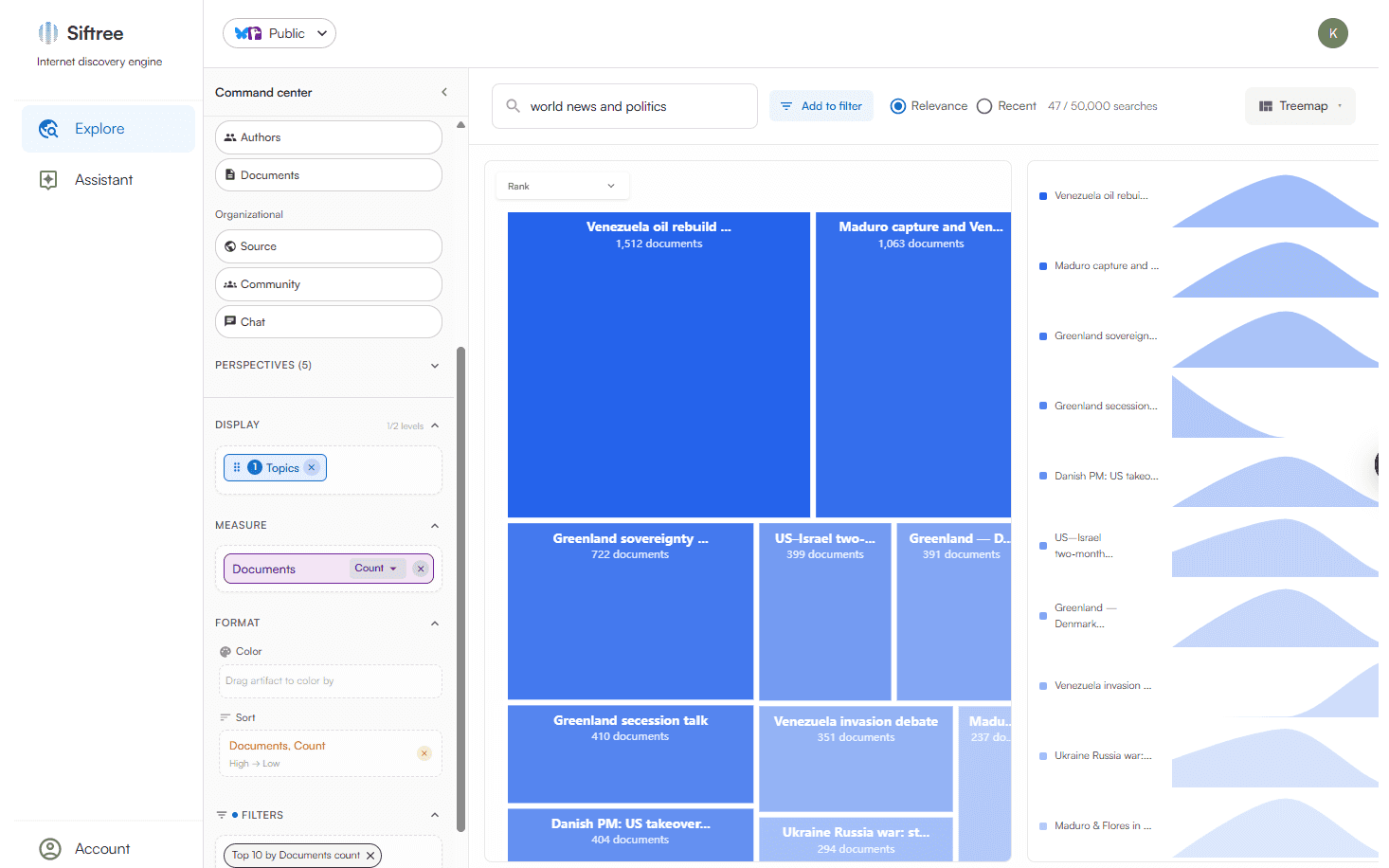 Siftree automatically establishes digital relationships, visualizing the connections between people, topics, belief-systems, platforms, and more.