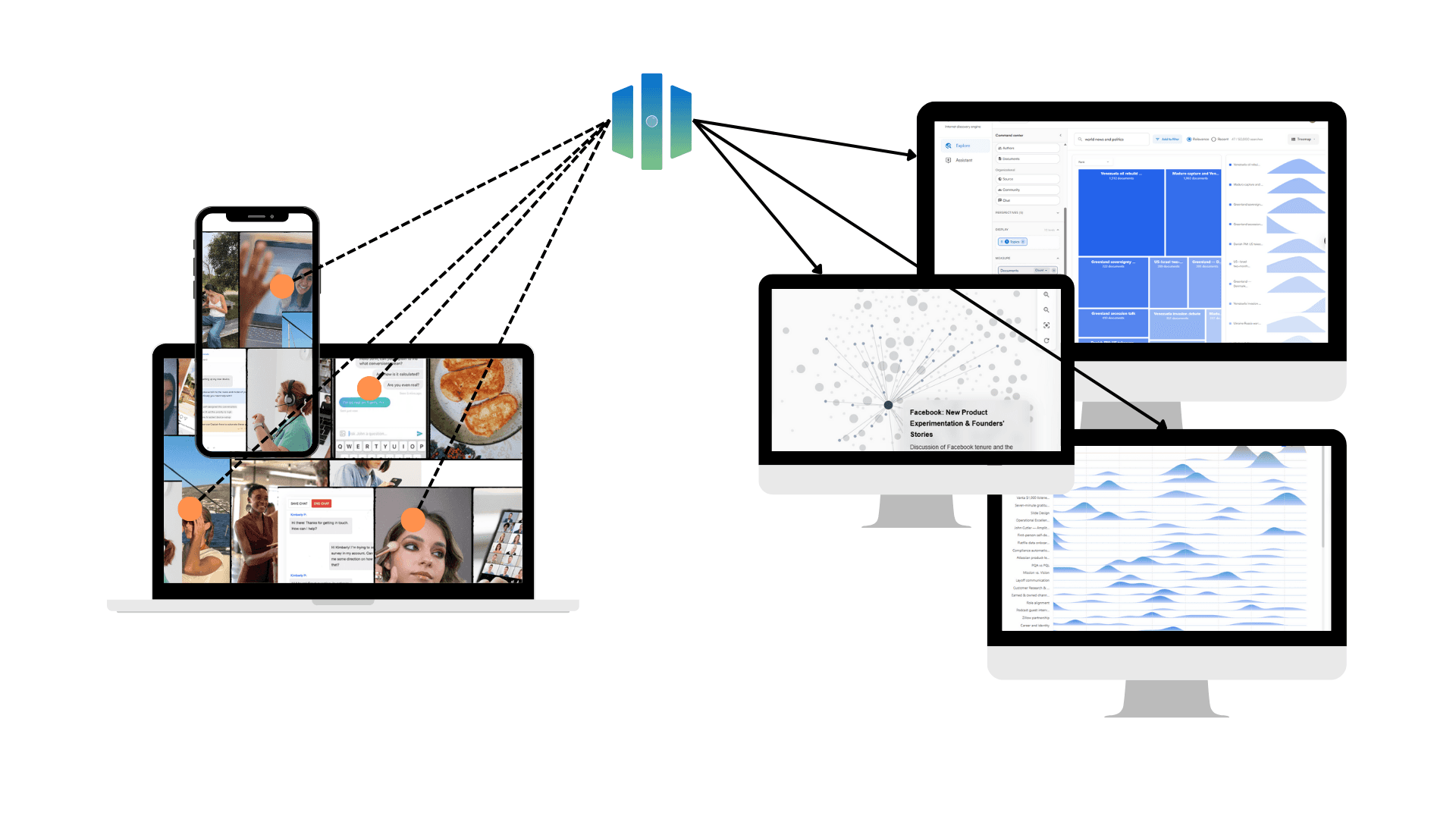 Analyze how narratives are formed, shift, and move across time, platforms, and customers.